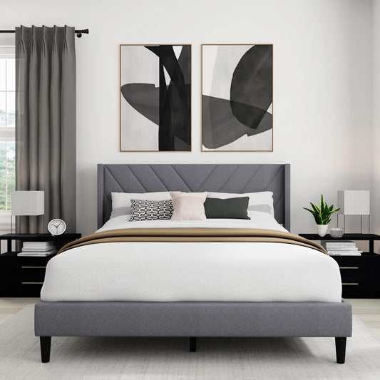 Wilder Upholstered Queen Platform Bed, Dark Gray, by Living Essentials
